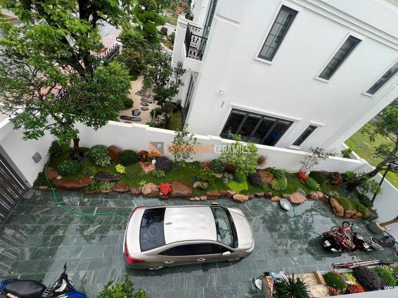 Trang trí cảnh quan: Dùng lát bậc tam cấp, hiên nhà, hoặc kết hợp cùng cây xanh, tiểu cảnh nước.