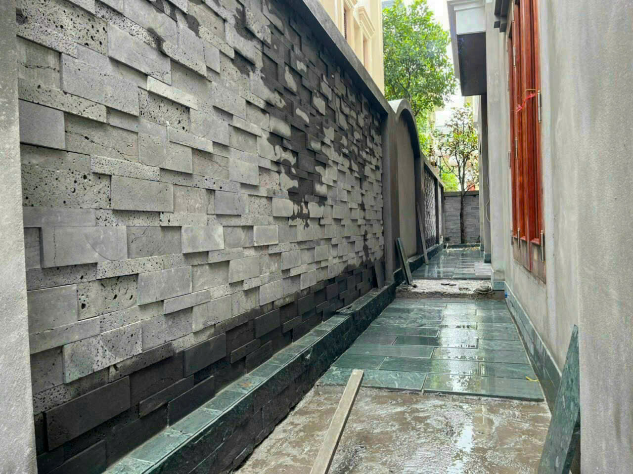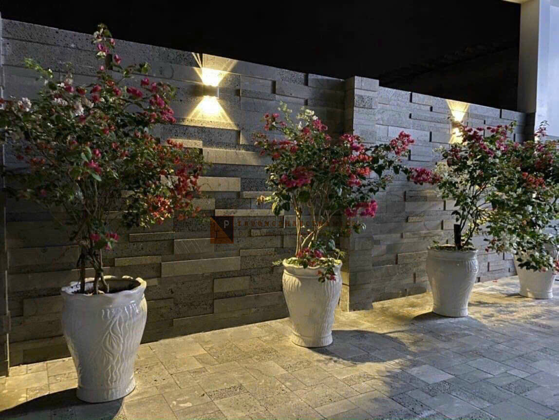 Ngoại thất: Sử dụng làm ốp mặt tiền tòa nhà, tường ngoài trời, vách ngăn ngoài trời, hay tạo điểm nhấn cho sân vườn, lối đi.