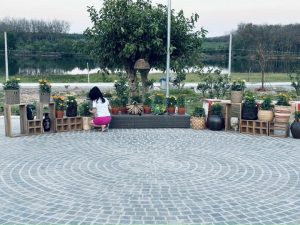 Trang trí tiểu cảnh: Kết hợp với sỏi, cỏ tạo nên những mảng nhấn ấn tượng.
